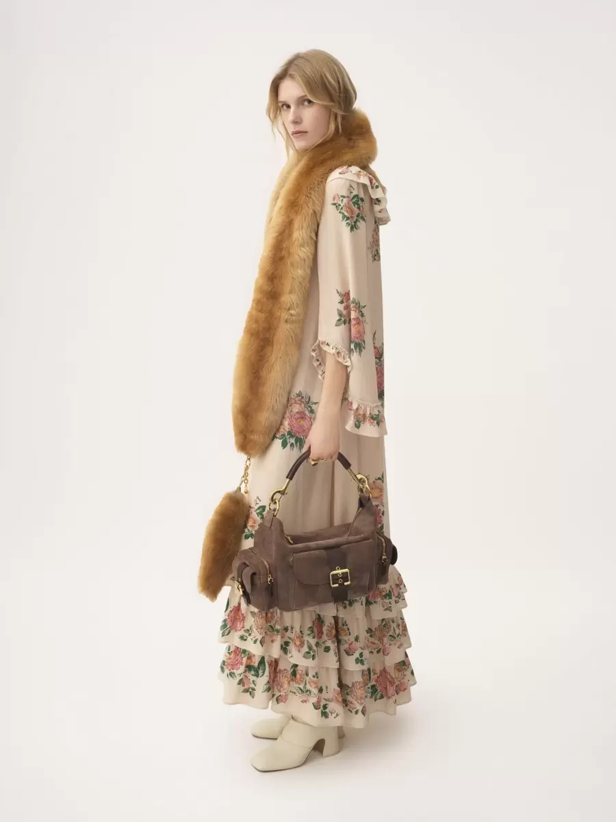 This product was made by Marie Helene Couture, a long-standing partner of Chloé based in Morlaas, France. Marie Helene Couture excels in the specialized technique of couture “flou.” Their expertise aligns with the rigorous standards set by the “métiers de la mode, vêtement flou” certification, ensuring a high level of professional aptitude in this delicate and skilled art form.
