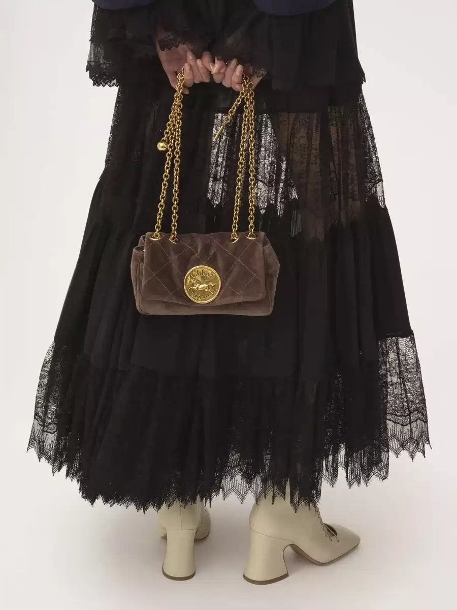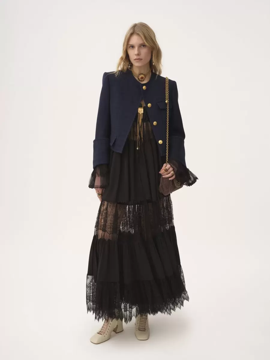 This product was made by Marie Helene Couture, a long-standing partner of Chloé based in Morlaas, France. Marie Helene Couture excels in the specialized technique of couture “flou.” Their expertise aligns with the rigorous standards set by the “métiers de la mode, vêtement flou” certification, ensuring a high level of professional aptitude in this delicate and skilled art form.