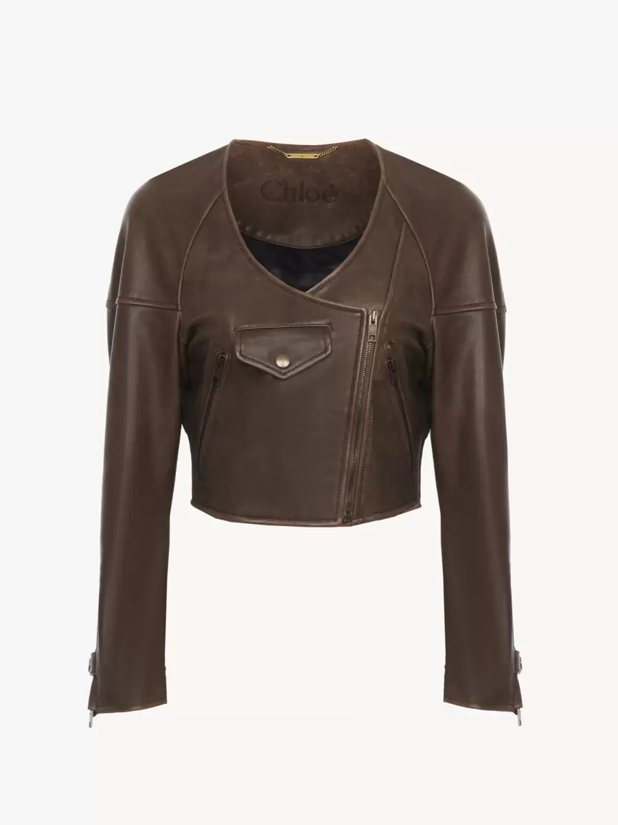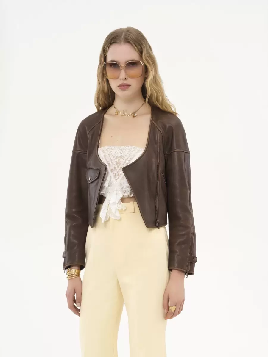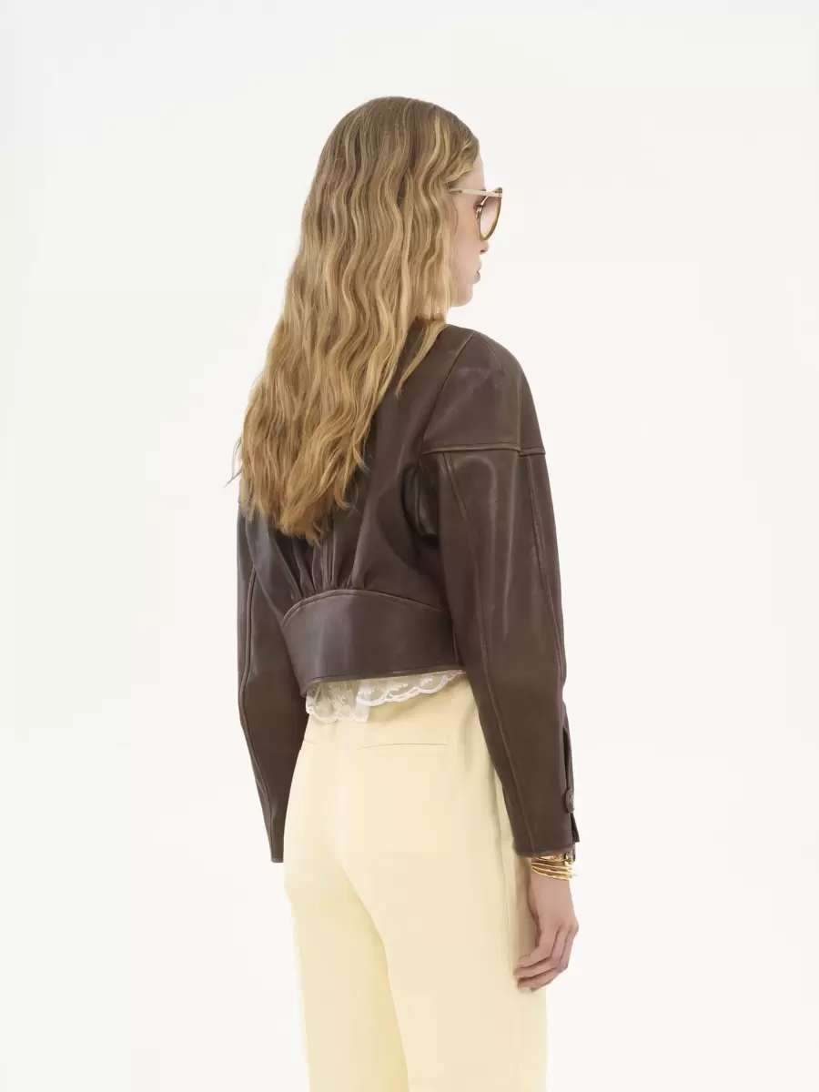 Cropped leather jacket outer shell: 100% Lambskin