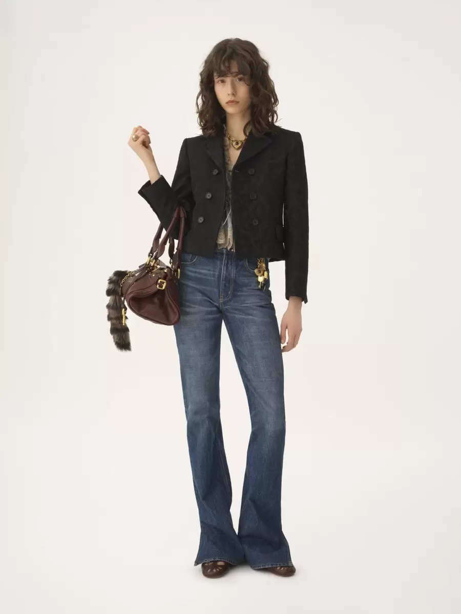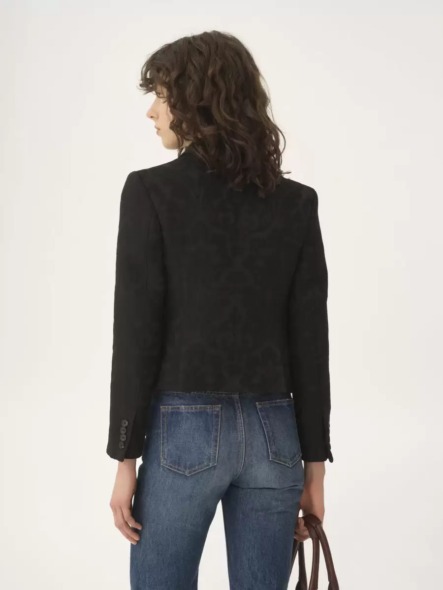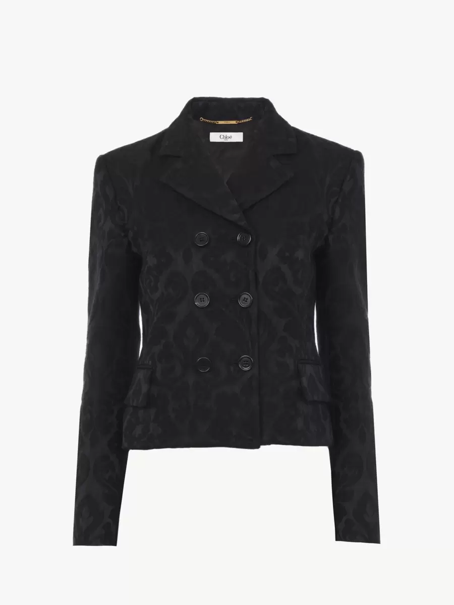 Double-breasted fitted jacket in an ornamental wool-mix jacquard with engraved horn buttons and flap pockets.