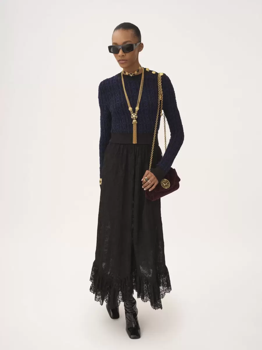 Mock-neck sweater outer shell: 73% Wool, 22% Silk, 5% Polyamide