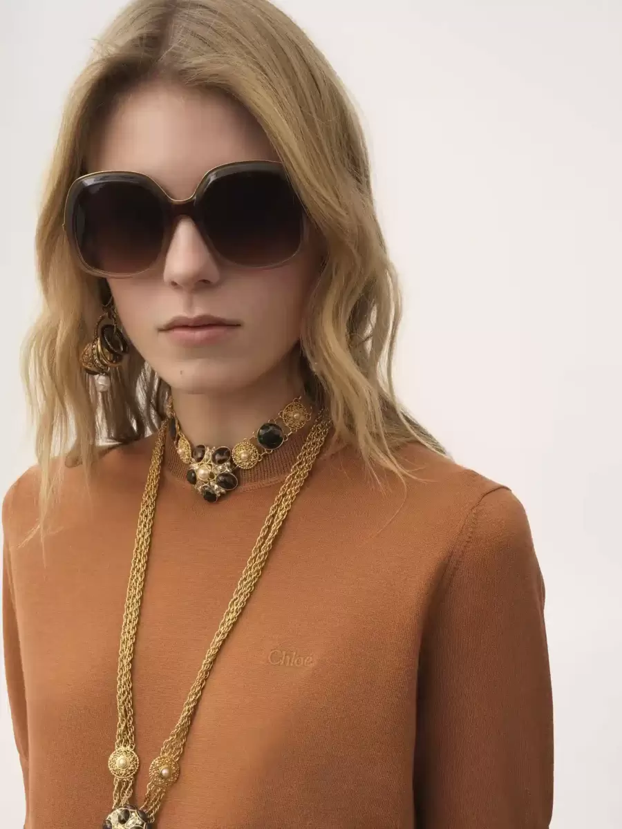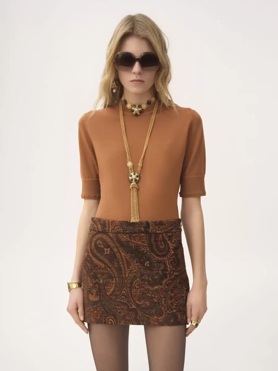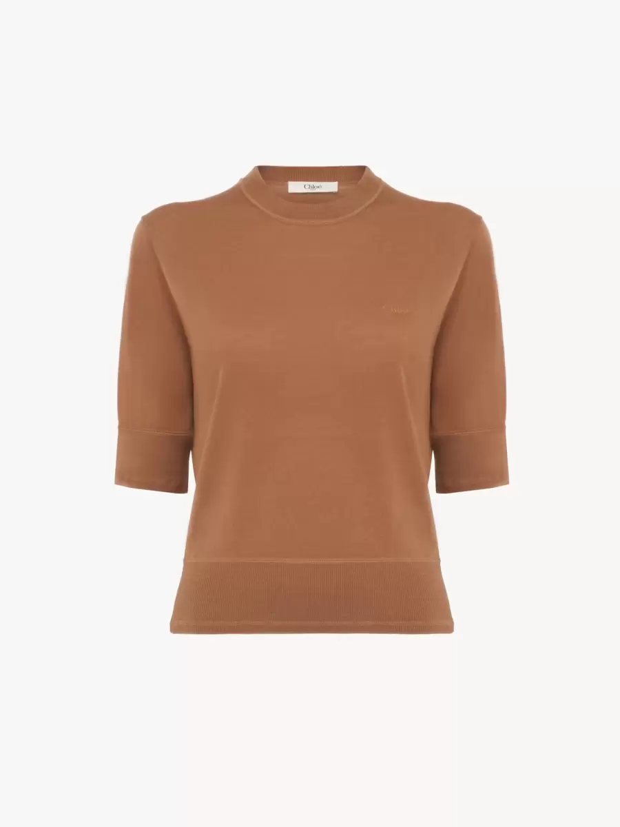 Short-sleeve sweater in a lower-impact fine merino knit, featuring ribbed trims and subtle Chloé logo embroidery at the chest.