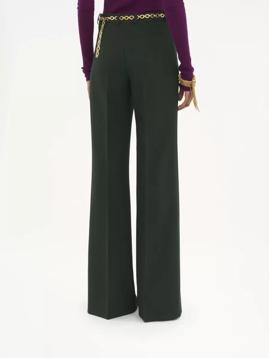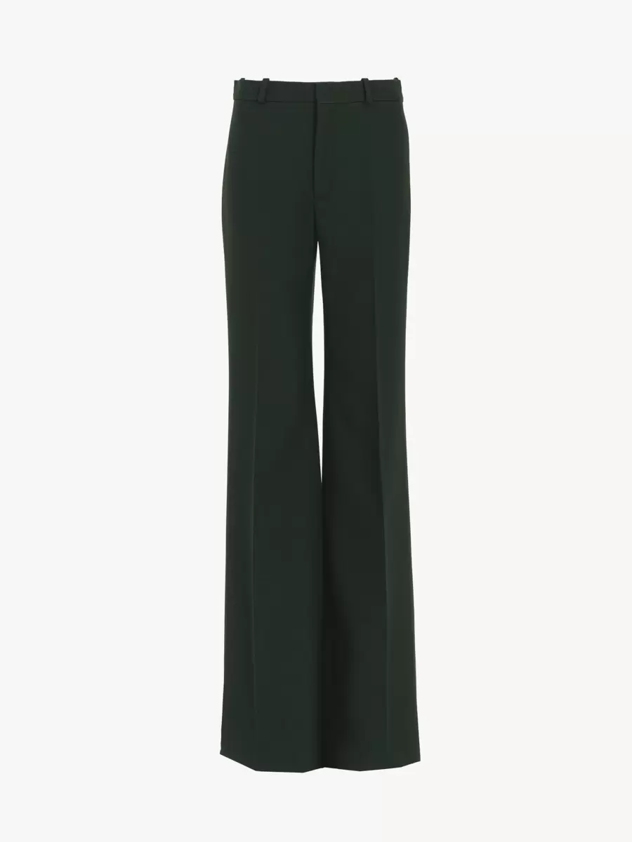 Flared tailored pants in lower-impact wool crêpe with pressed creases.
