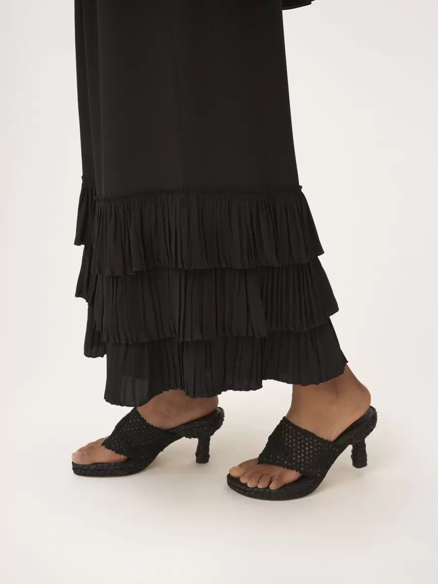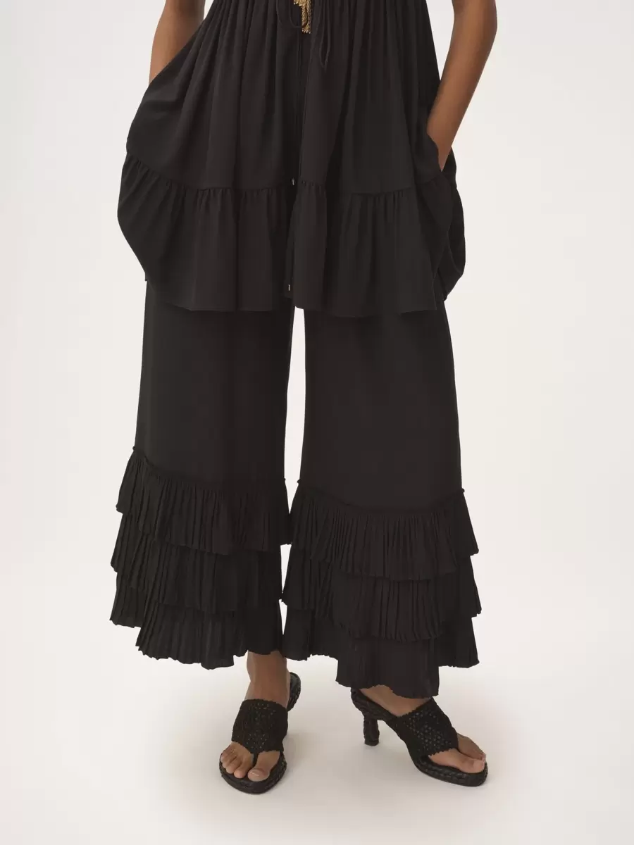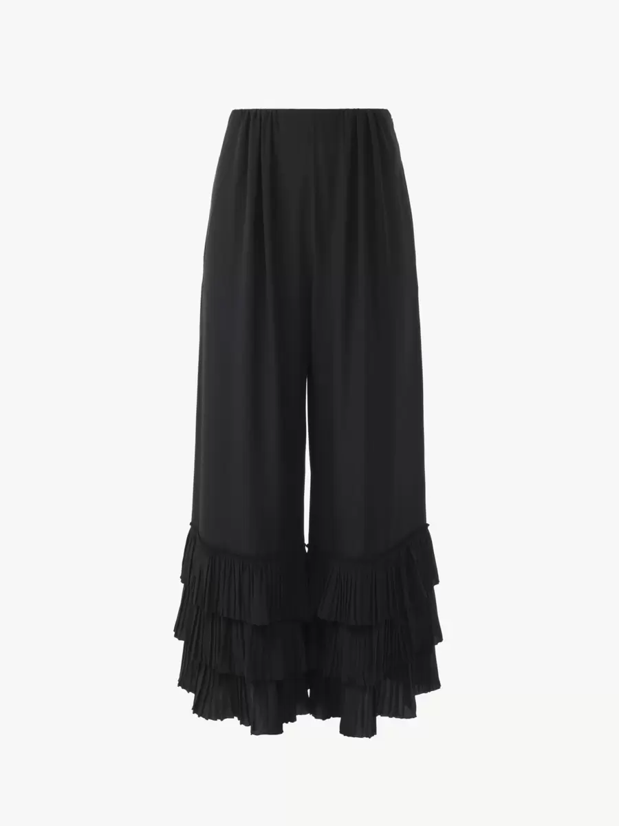 Fluid wide-leg pants in organic silk crêpe de chine with a tiered, ruffled hem.