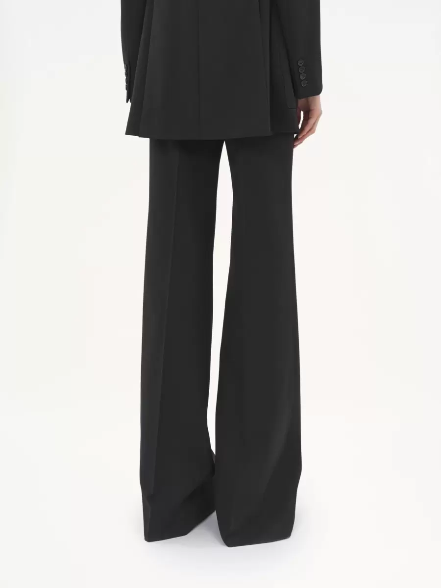 High-rise flared pants in lower-impact wool grain de poudre with pressed front creases.