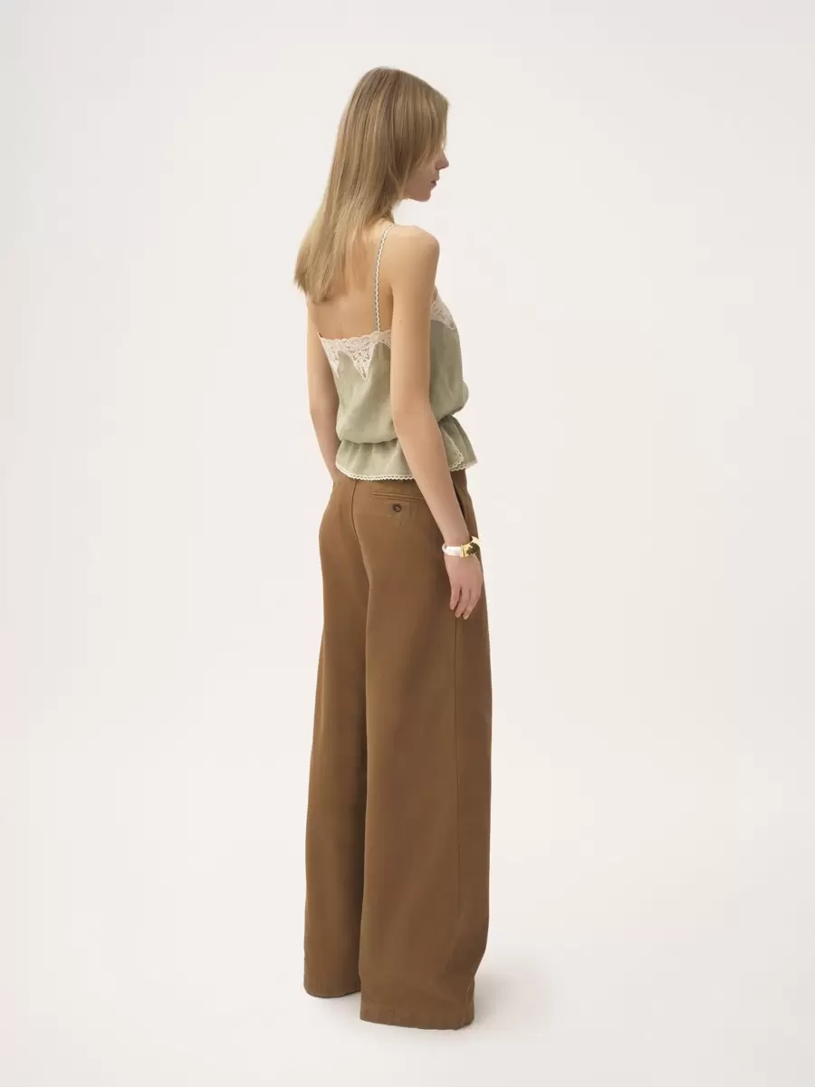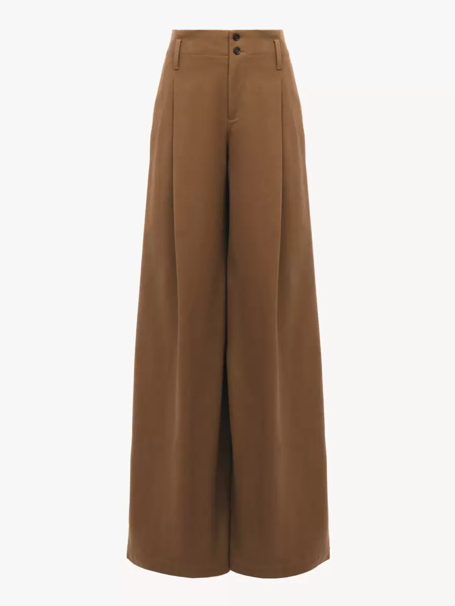 High-rise wide-leg pants in garment-dyed cotton canvas, featuring front pleats and engraved horn buttons.