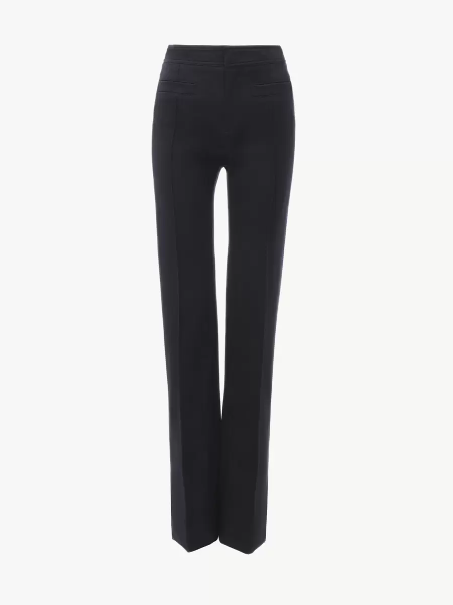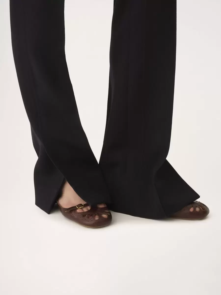 Tailored pants in lower-impact wool gabardine, featuring raised seams, slit hems and a gold-tone D-ring at the back.