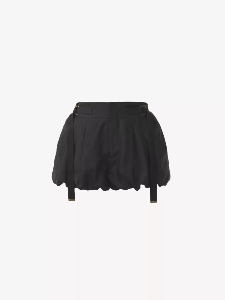 Fluid, gathered mini bloomer shorts in washed silk habotai with buckled belt ties at the waist. Tonal Chloé logo embroidery signs the back.