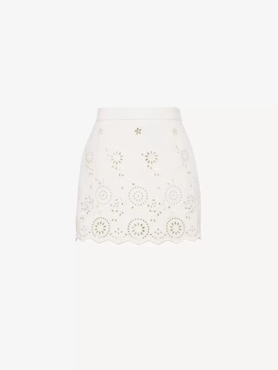 Tailored mini skirt in a quilted floral jacquard cotton mix with floral broderie anglaise and a scalloped hem.