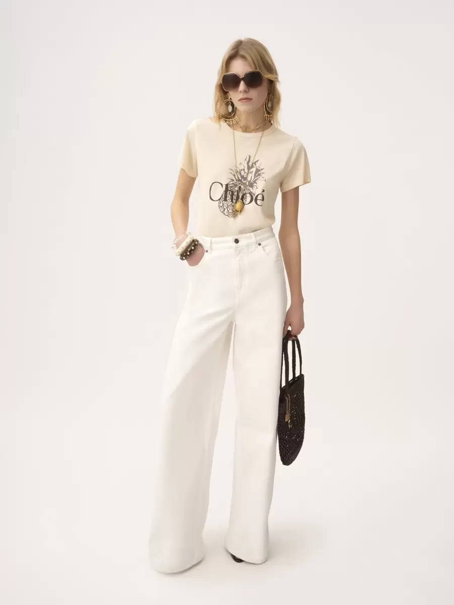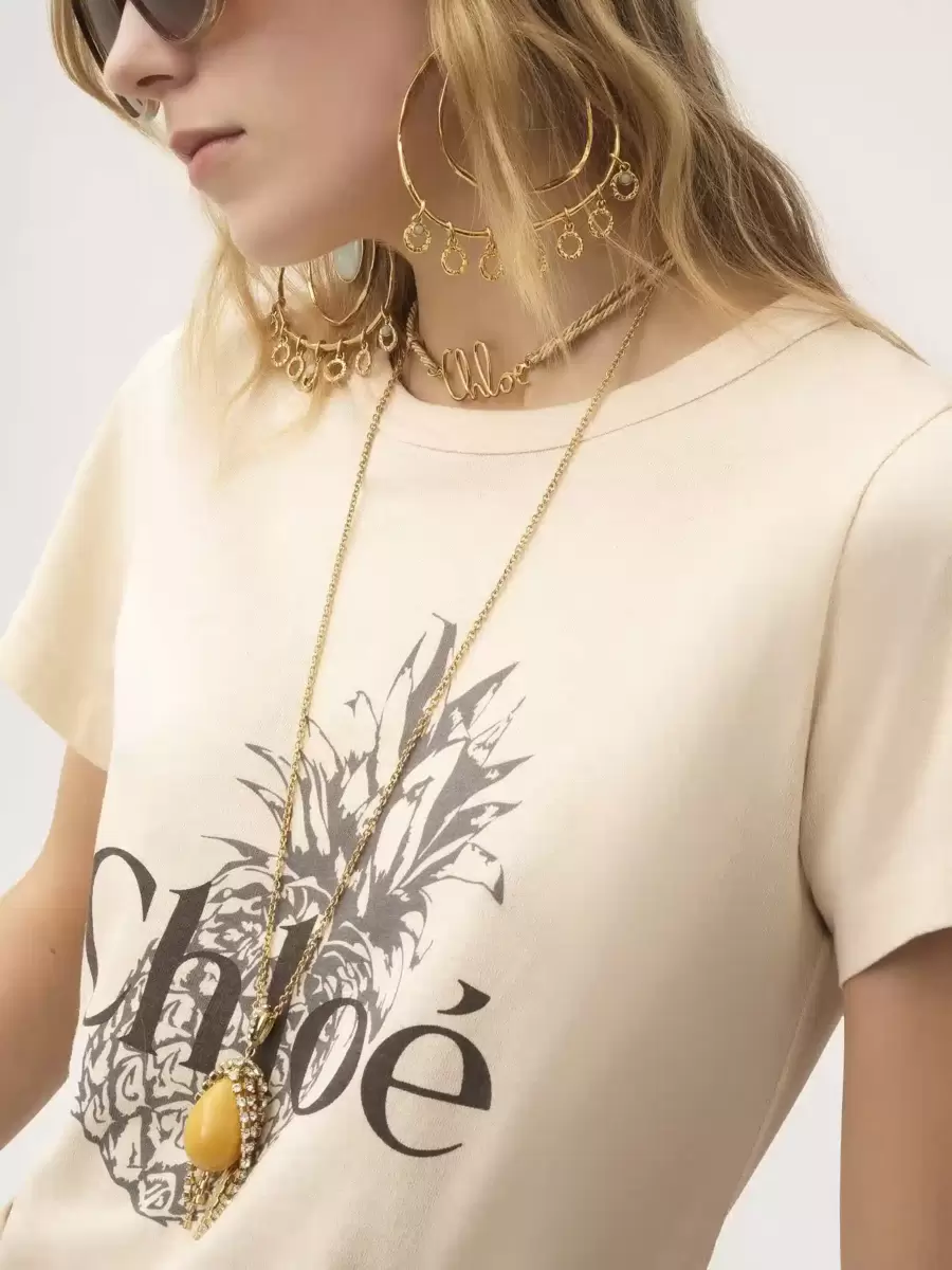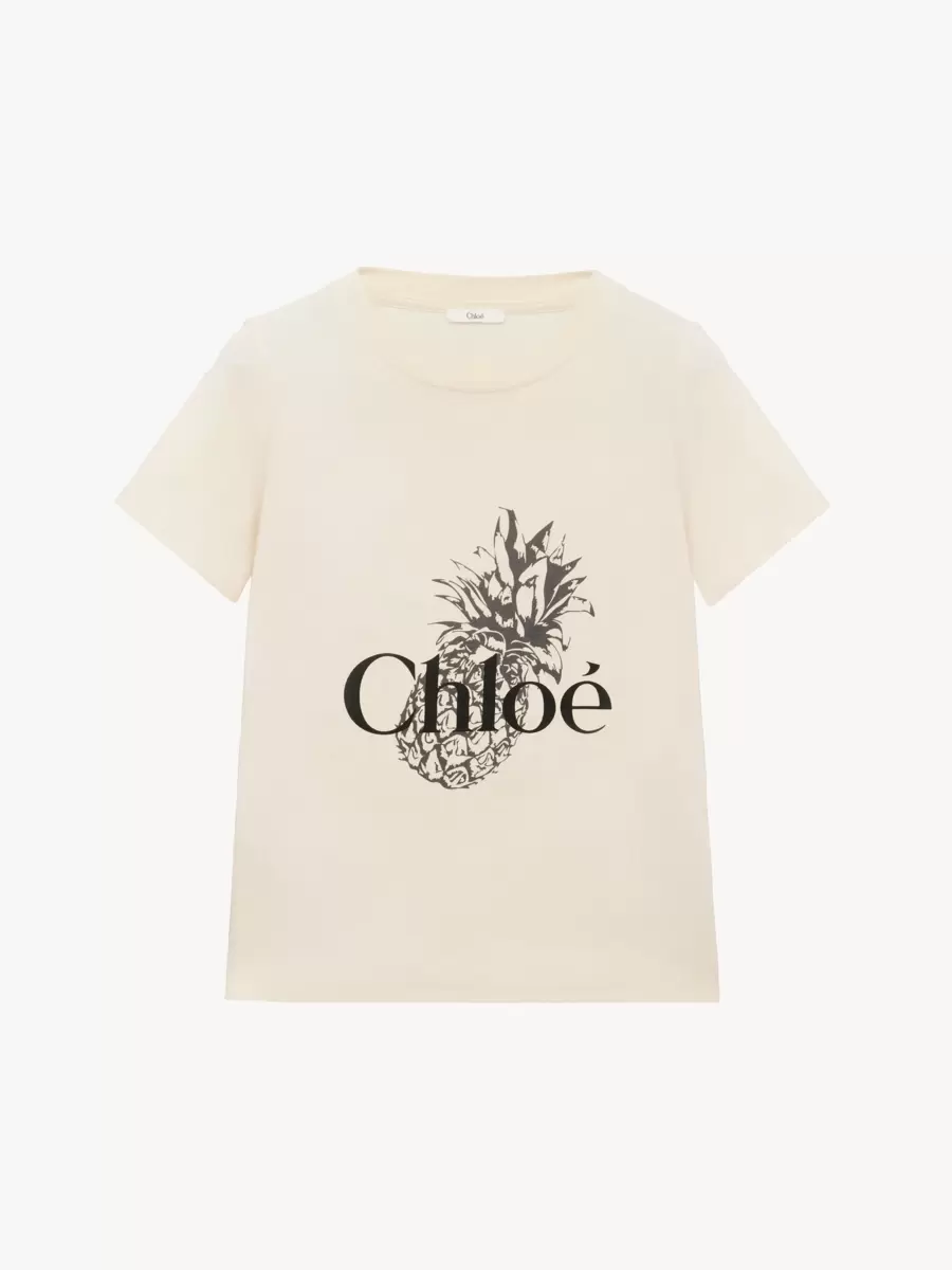 Crew-neck baby fit T-shirt in organic cotton jersey, featuring a contrast Chloé logo and pineapple print.