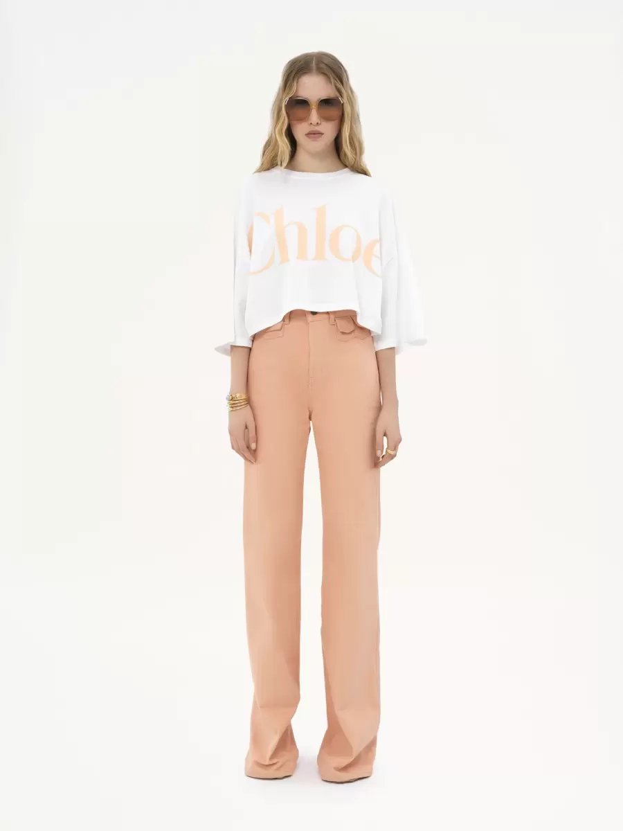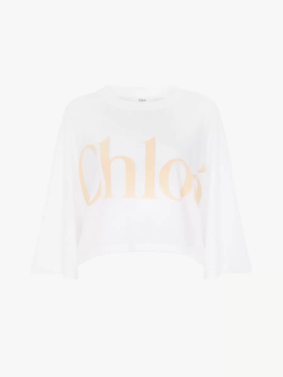 Oversized cropped T-shirt in cotton jersey, featuring a large contrast Chloé logo print at the front.