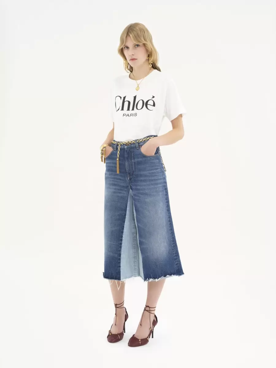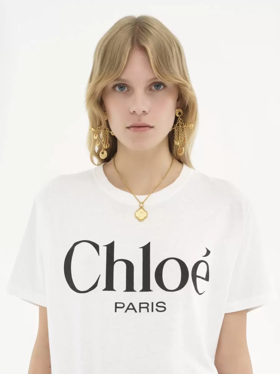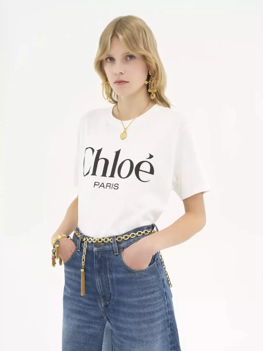Crew-neck oversized T-shirt in light washed cotton jersey, featuring a contrast Chloé Paris logo print at the front.