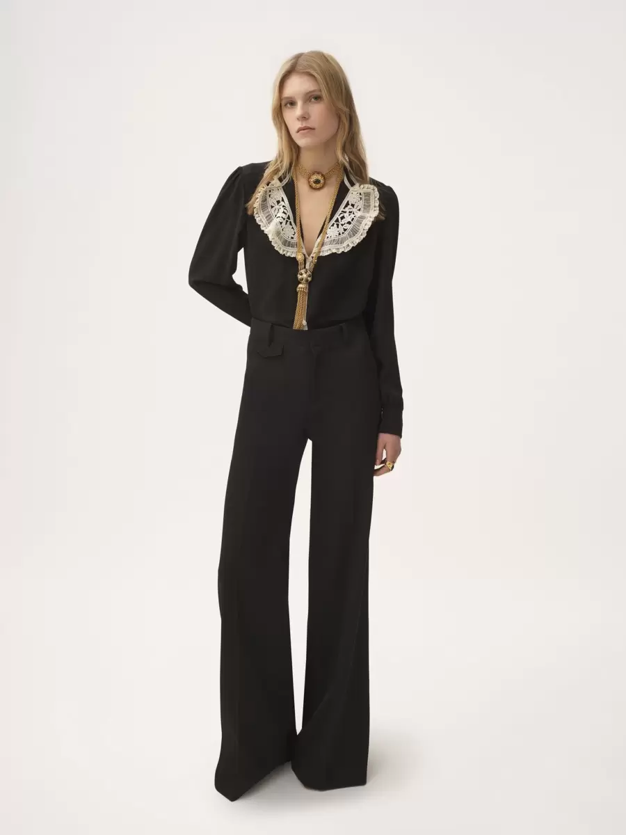 – Lace-trim silk blouse