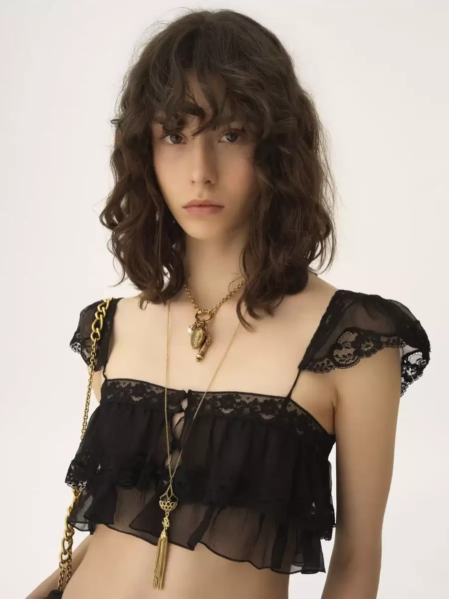 Be the first to review “Ruffled bralette in silk mousseline & lace”
