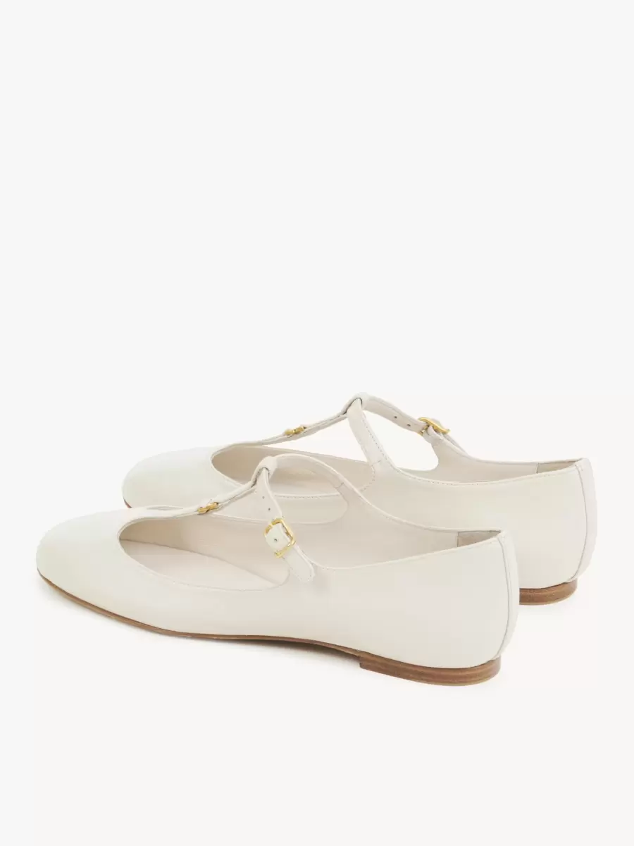 Crafted from nappa goatskin, this revisited Marcie ballerina pairs a Mary Jane silhouette with an almond toe shape for a Parisian attitude.