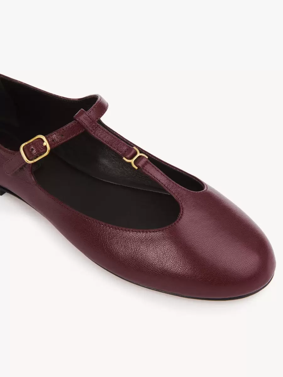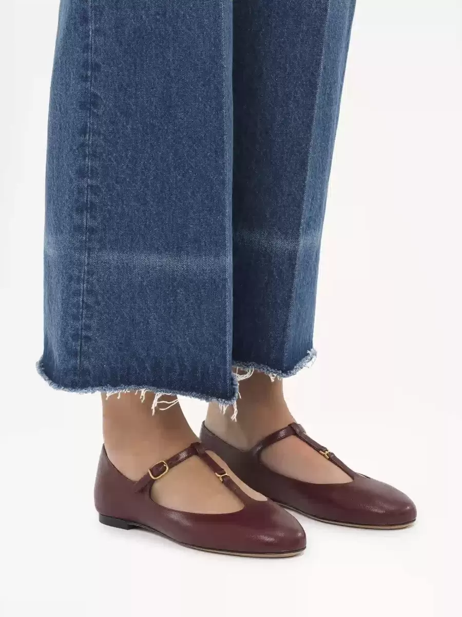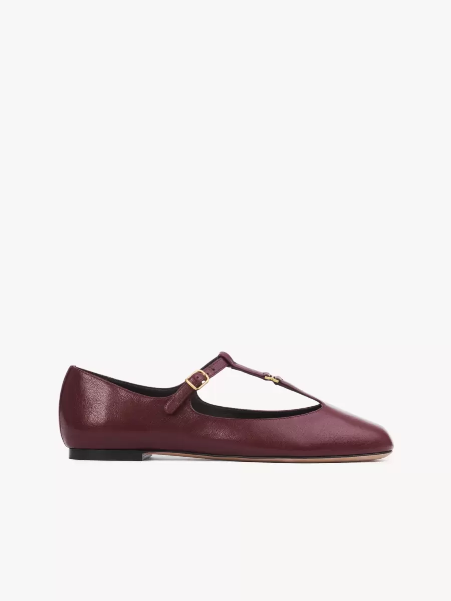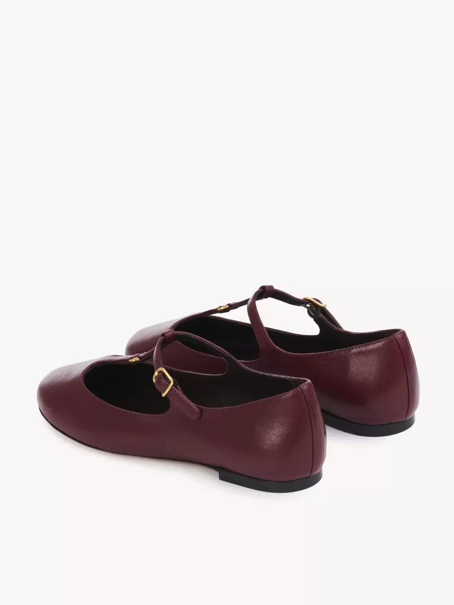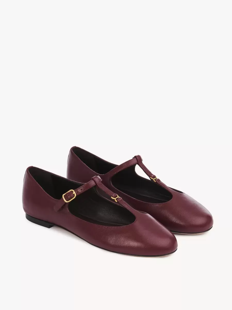 Crafted from nappa goatskin, this revisited Marcie ballerina pairs a Mary Jane silhouette with an almond toe shape for a Parisian attitude.