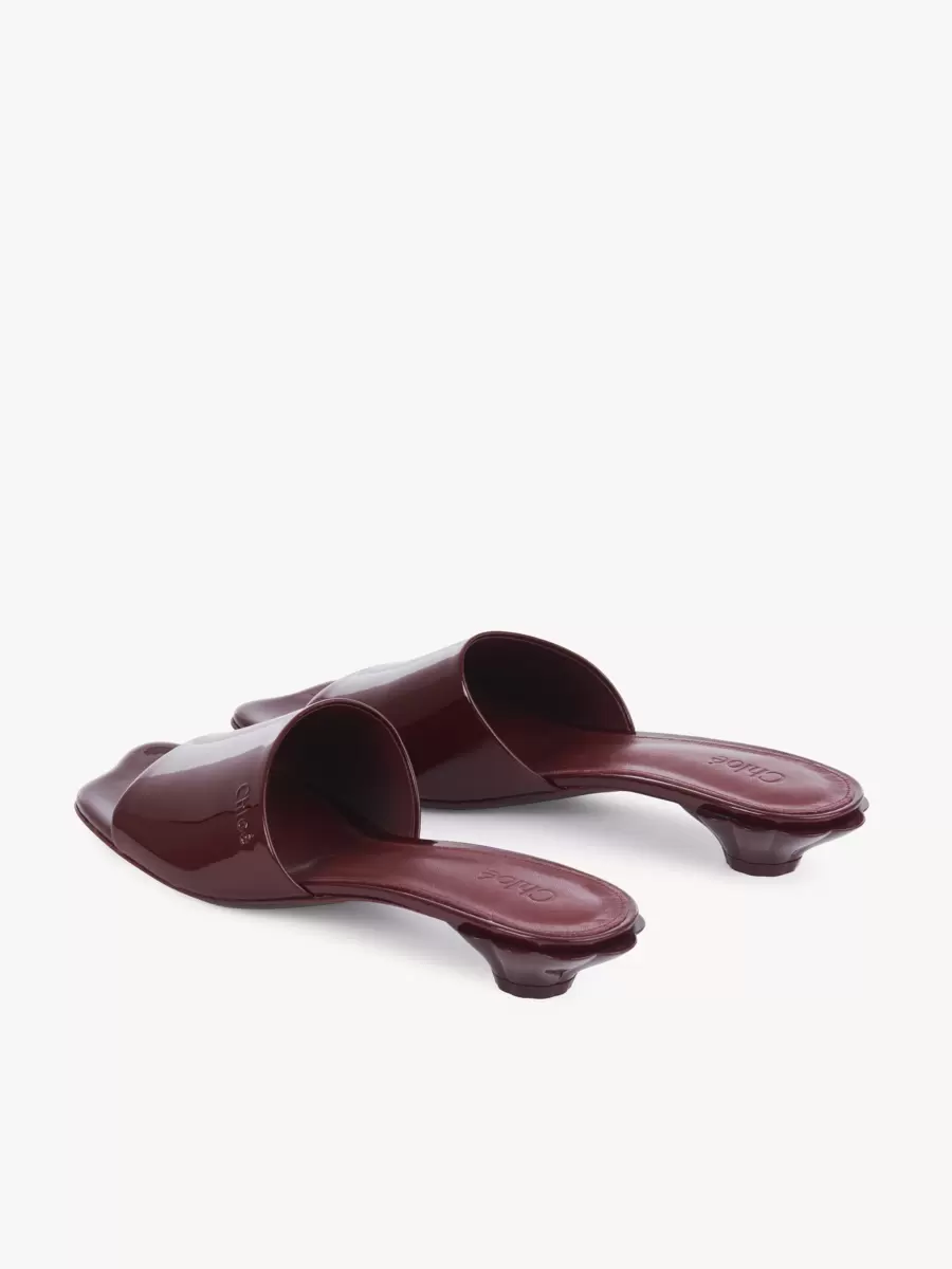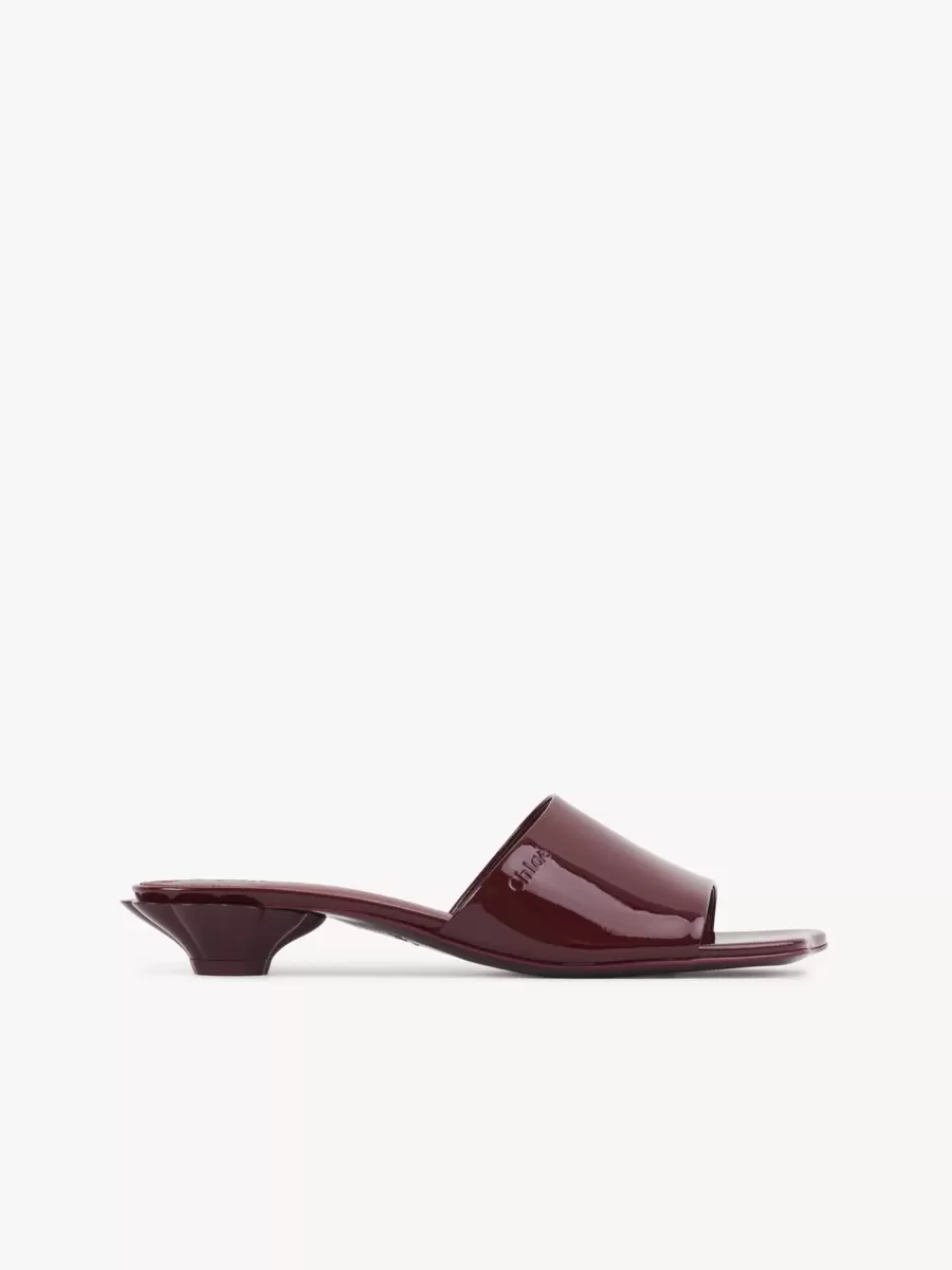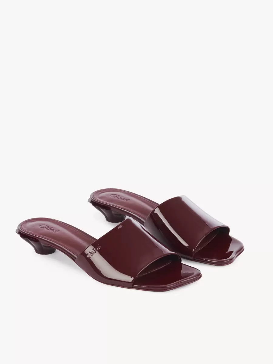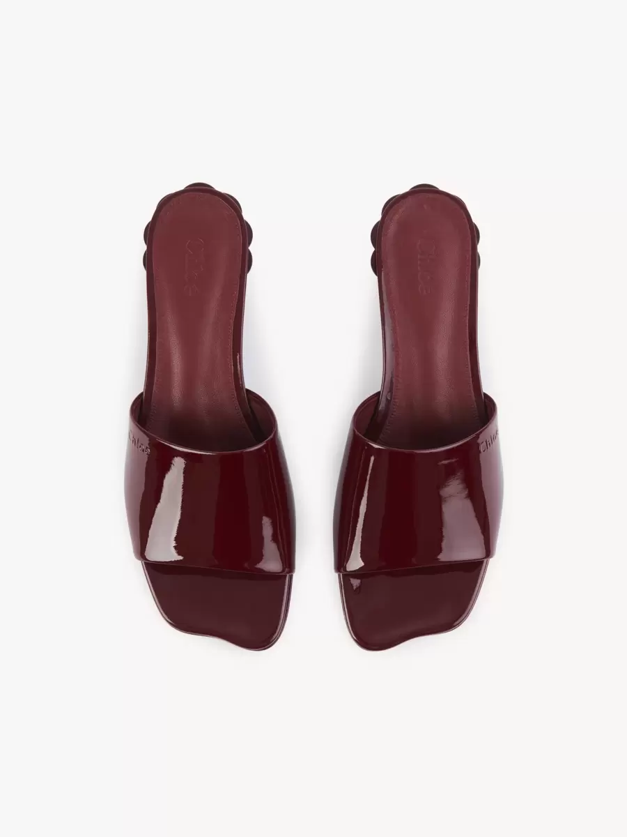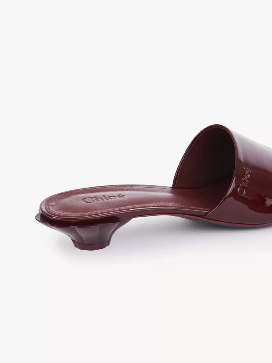 Crafted from patent calfskin, the Flower mules feature a distinctive wavy sole and a shell-shaped heel. A debossed Chloé logo signs the upper.