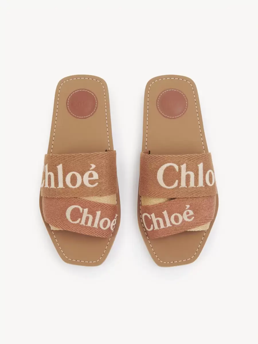 These Woody mules are crafted from different-sized ribbons in lower-impact linen, finished with contrast Chloé logo embroidery.
