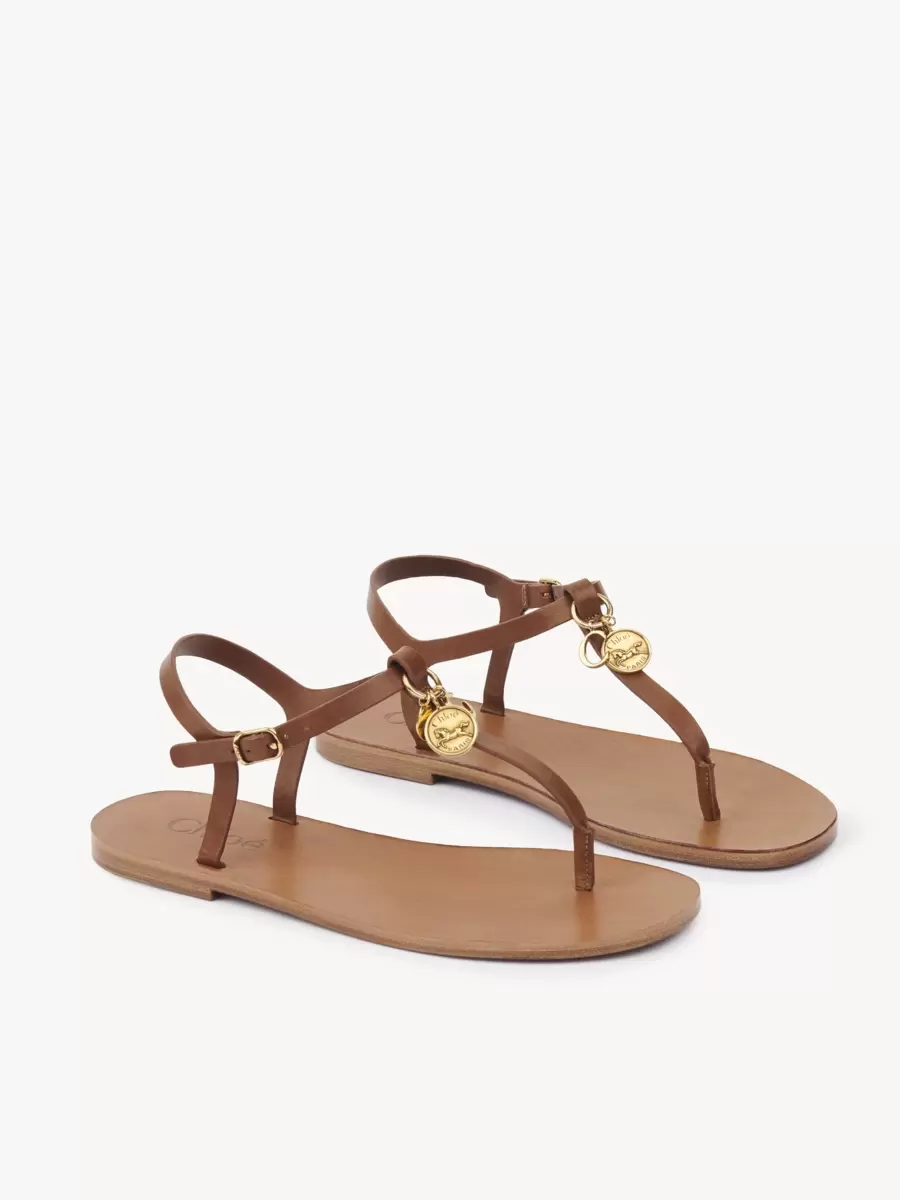 Crafted from shiny calfskin, the Chloé Charms flat sandals pair a delicate thong upper with an adjustable buckled ankle strap. The front is embellished with subtle gold-tone charms inspired by the Maison’s heritage.