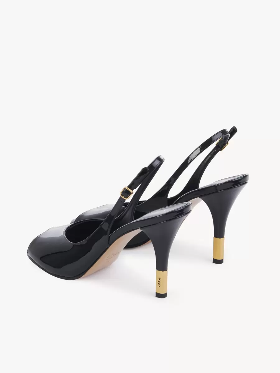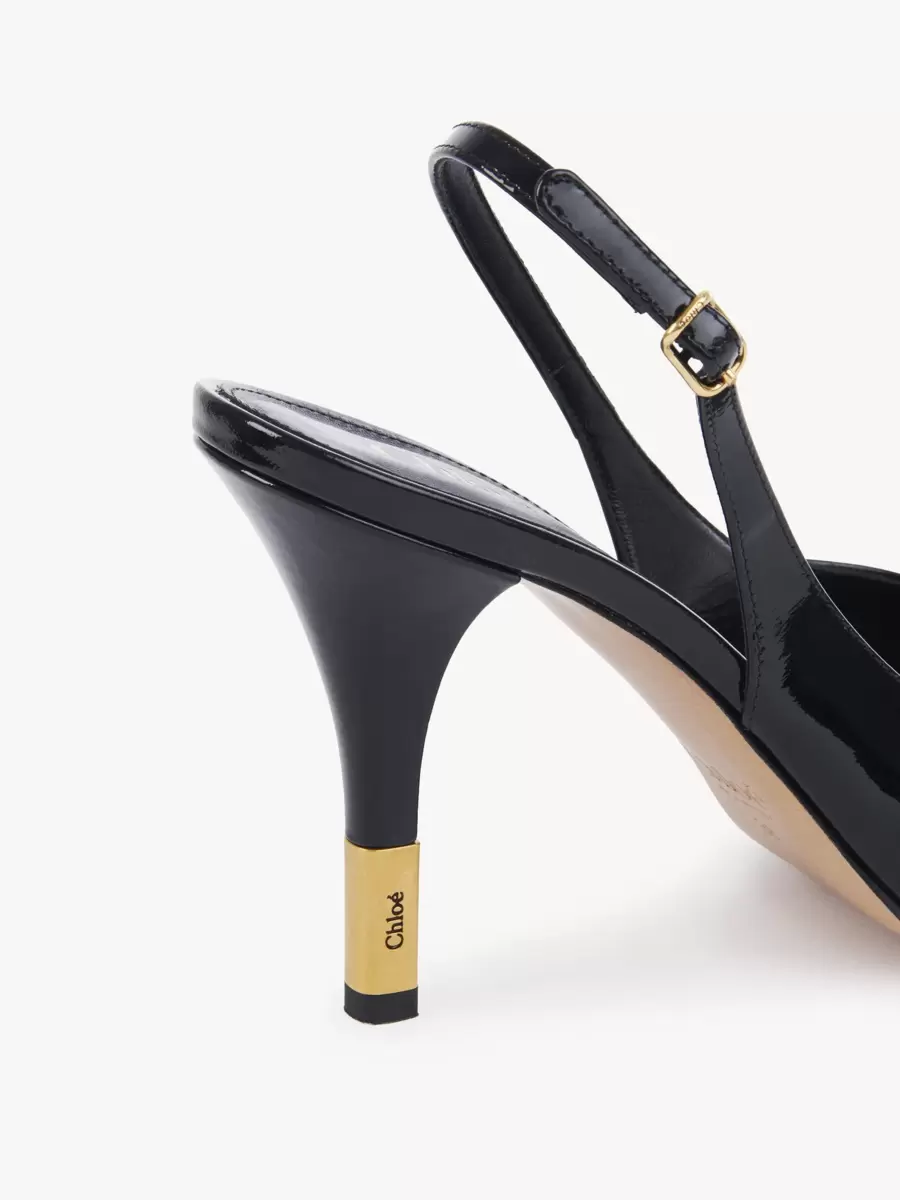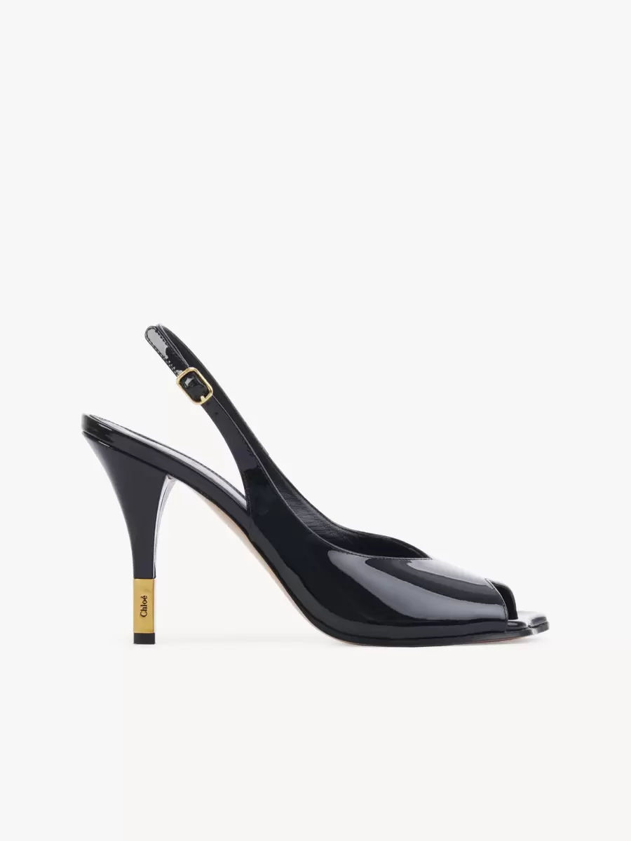 This adjustable slingback sandal is finished with a gold heel insert and buckle, both engraved with the Chloé logo.