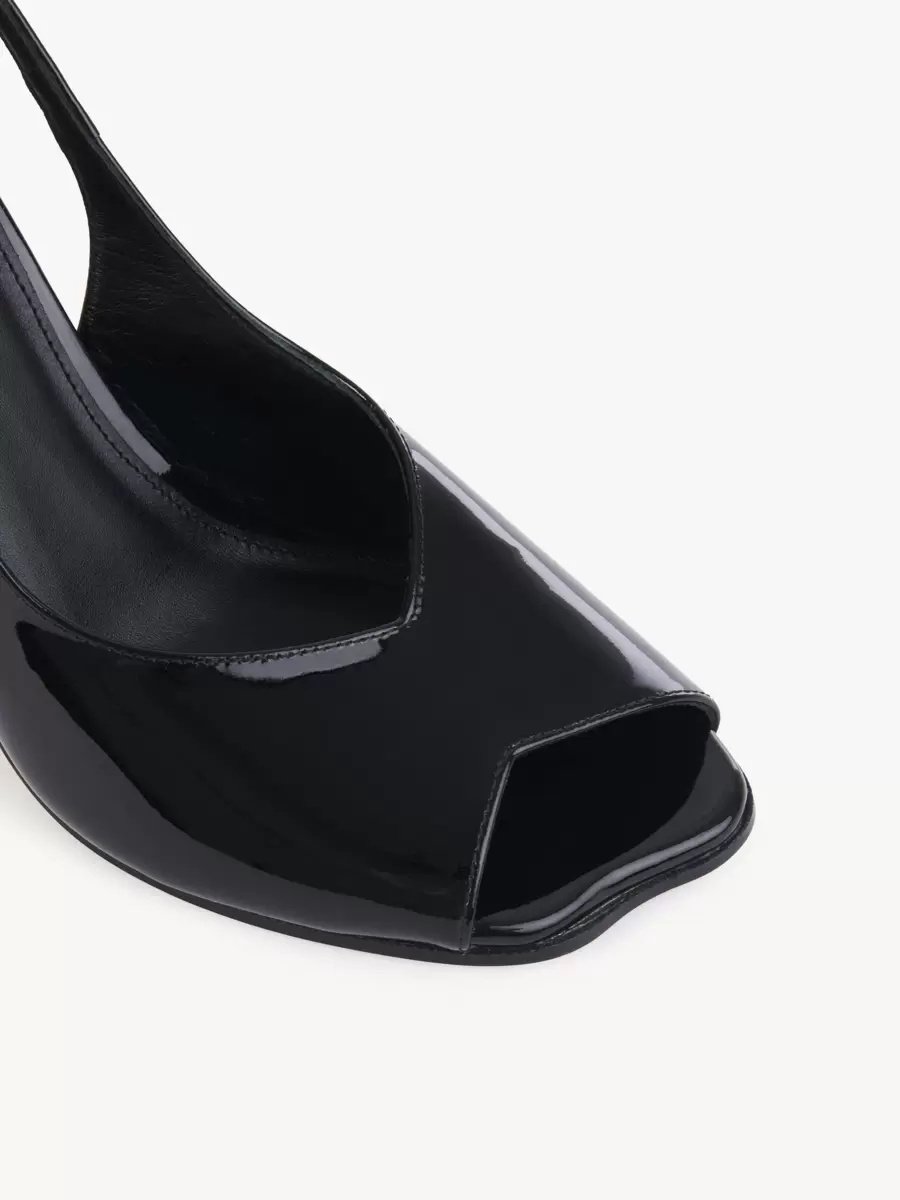Crafted from patent calfskin, these heeled Flower sandals feature a distinctive wavy sole and a peep-toe front.