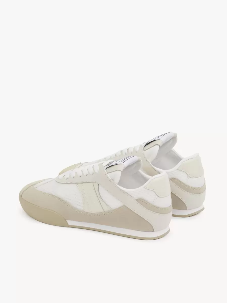 Inspired by the ballet and boxing worlds, these Chloé Kick sneakers are crafted from recycled active mesh and a mix of smooth and suede cowhide with an updated design, featuring a lighter silhouette and a debossed Chloé logo at the side and back.