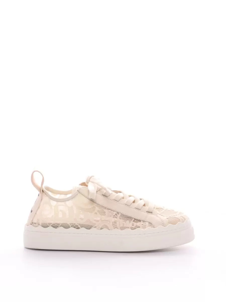 Tonal laces, a flexible white rubber sole and a nylon back loop revealing the Chloé logo all enhance its sporty aesthetic. The signature Lauren scallops echo the line’s romantic DNA, while the round toe shape lends a feminine finish.