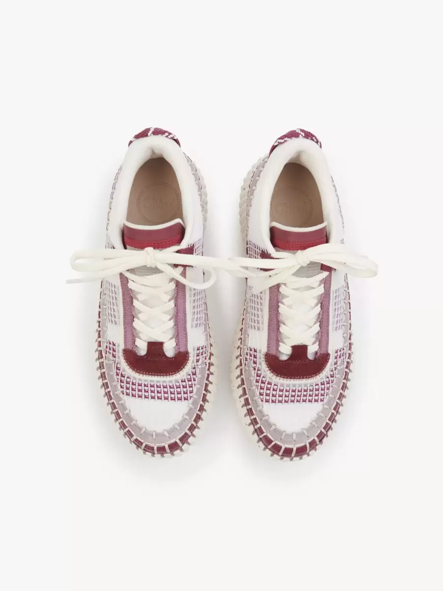 The Nama sneakers are crafted from recycled materials in a mix of contrasting colors and textures. These sneakers are set on an iconic, lightweight and ultra-comfortable sole with a speckled effect, and finished with immaculate blanket stitching which takes 4.5 hours to complete by hand. The Chloé logo signs the back.