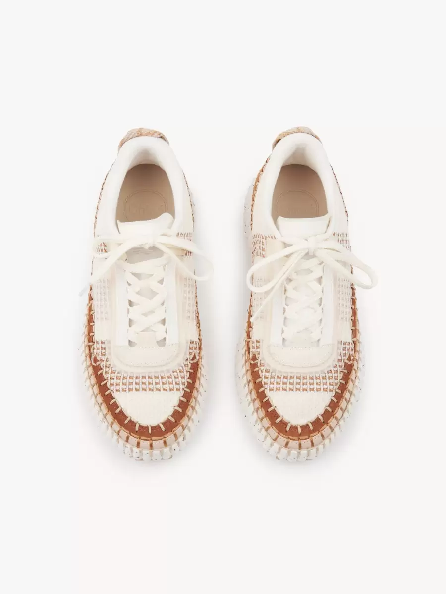 The Nama sneakers are crafted from recycled materials in a mix of contrasting colors and textures. These sneakers are set on an iconic, lightweight and ultra-comfortable sole with a speckled effect, and finished with immaculate blanket stitching which takes 4.5 hours to complete by hand. The Chloé logo signs the back.