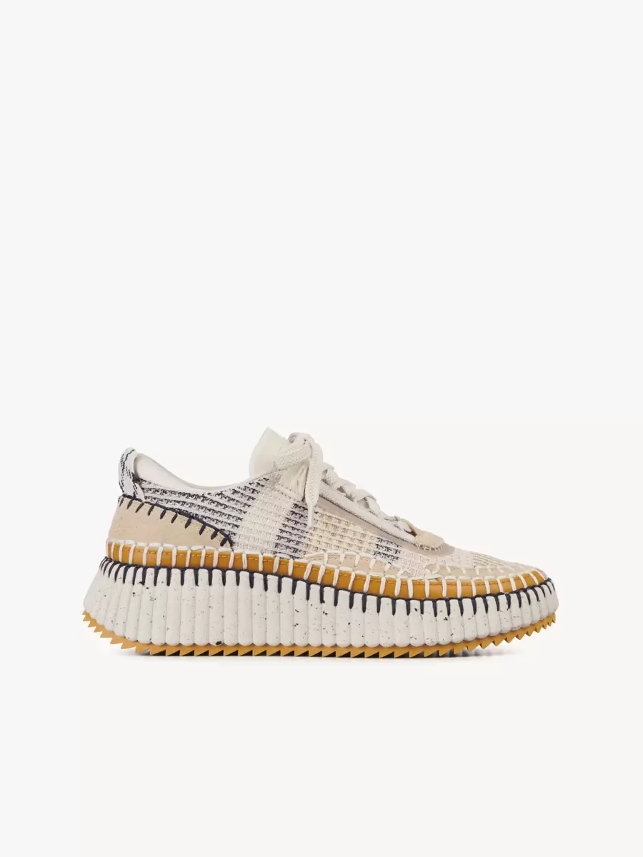 The bold, lightweight structure features a hand-stitched mesh upper, showcasing authentic Chloé craftsmanship. Set on a contrasting, ridged sole, this unisex sneaker is ultra-comfortable with a cool, sporty aesthetic. The Chloé logo at the back adds a signature touch.