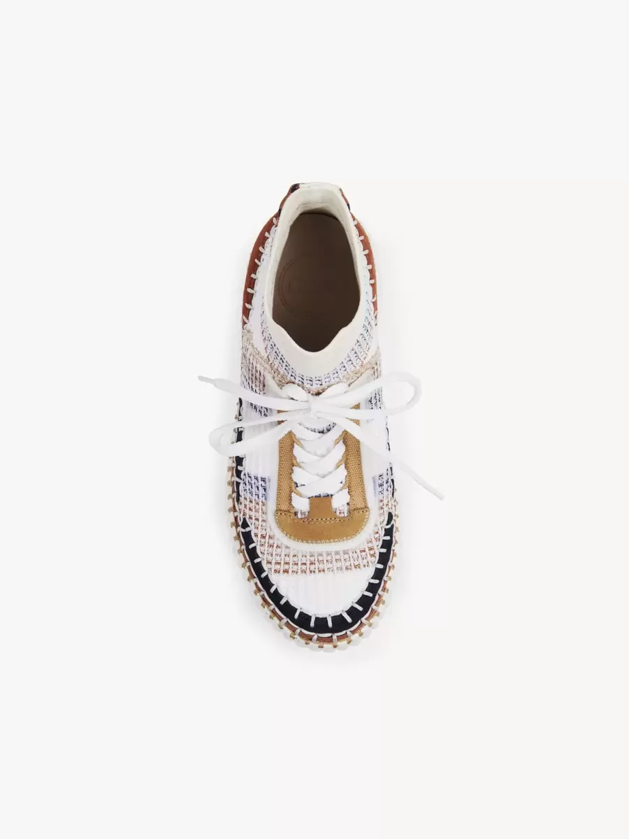 The exaggerated ribbed wedge structure is matched with a hand-stitched upper, showcasing authentic Chloé craftsmanship with a sporty twist. An embossed Chloé logo at the back adds a signature touch.