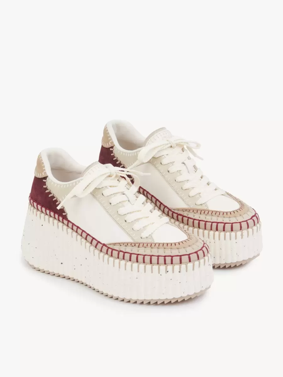 Crafted from smooth and suede cowhide, these Nama wedge sneakers are set on an iconic, lightweight and ultra-comfortable recycled sole with a speckled effect. They are finished with immaculate blanket stitching which takes 4.5 hours to complete by hand. An embroidered Chloé logo signs the tongue while a debossed logo finishes the back.